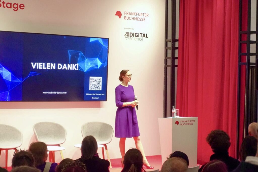 Eine sehr ereignisreche und volle Woche liegt hinter mir. Highlight war auf jeden Fall die Frankfurter Buchmesse, wo ich dieses Jahr auf der Innovation Stage einen Kurzvortrag zu meinem Buch „Wissenschaftliches Schreiben mit KI“ halten durfte.